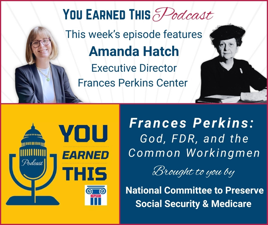 “You Earned This” is a weekly podcast brought to you by the National Committee to Preserve Social Security and Medicare. Every episode they host a new VIP guest to discuss Social Security, Medicare, aging with dignity, and other essential topics affecting older Americans and their families. Listen to Amanda Hatch, Executive Director, discuss Frances Perkins and her legacy as the architect of Social Security. This episode and more can be found HERE (listen time about 25 minutes).